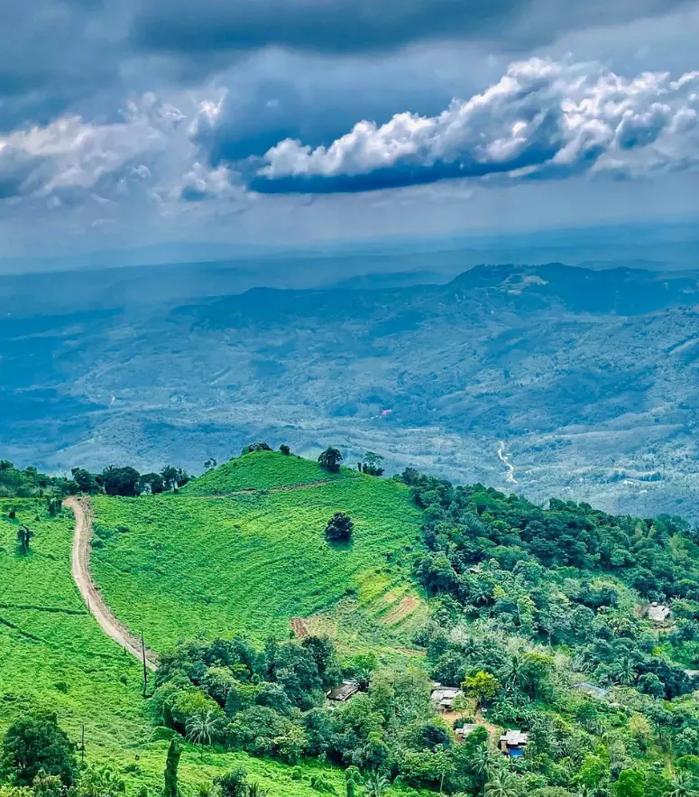 A scenic hilltop viewpoint offering misty views, cool breezes, and peaceful nature escapes.